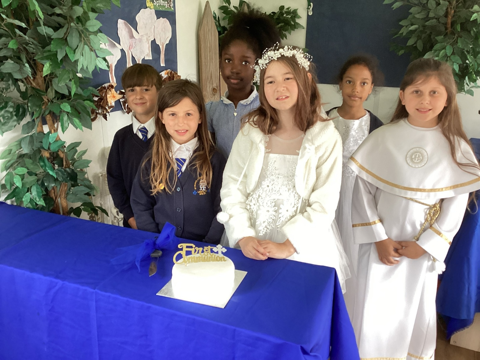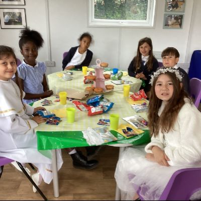 We celebrated with our children who had made their first Holy Communion. After a special Mass at St. Patrick's Parish Church in Duston, we came back to school and had a celebration tea party.                              It was a beautiful occasion.